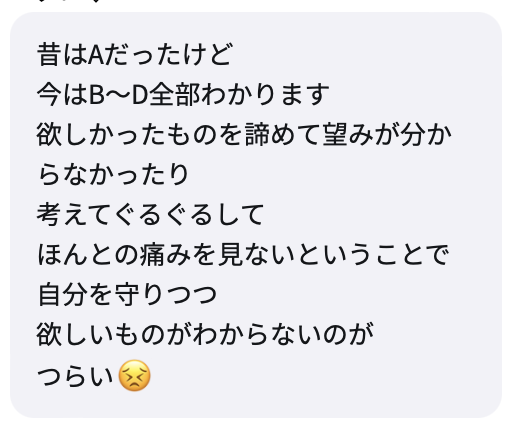 本当は、誰かとそのままの自分や本音で繋がりたい気持ちや、愛情に素直でいたい気持ち、本当にその通りでした。